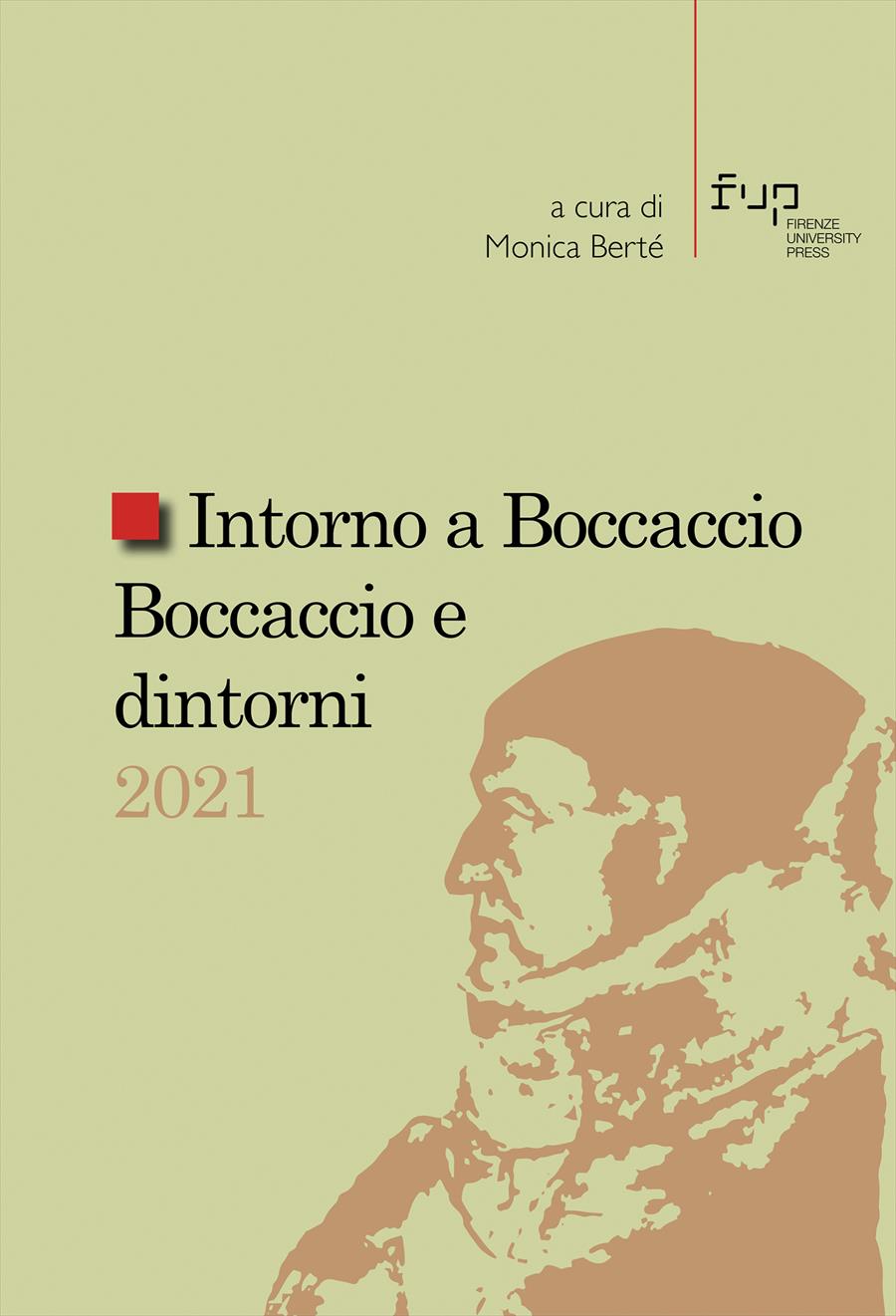 Intorno a Boccaccio/Boccaccio e dintorni 2021 raccoglie gli Atti del Seminario che si è svolto a Certaldo Alta il 9-10 settembre 2021. Il Seminario, giunto all'ottava edizione, si configura non solo come una delle attività principali dell’Ente Giovanni Boccaccio, ma come un appuntamento di rilievo internazionale, la cui importanza è confermata dall’incremento continuo delle citazioni nella bibliografia scientifica. Anche l’edizione 2021 si qualifica per il rilievo e la varietà dei temi trattati, per il confluire e l’intrecciarsi di competenze storico-letterarie, filologiche, linguistiche, che portano a riflettere su argomenti importanti della cultura e delle fonti di Boccaccio e sulle sue opere.