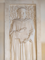Nel 1949, in seguito al riconoscimento ufficiale della tomba del Boccaccio durante il Convegno dei Dotti, in cui si conferma che quelle ossa appartenevano al Poeta, la Società Storica della Valdelsa deliberò di rifare, a sue spese, la pietra tombale, dandone l’incarico allo scultore Mario Moschi. Attualmente l’originale copre quella che viene considerata la Tomba del Novelliere nella Chiesa dei SS. Michele e Jacopo, mentre al pian terreno della Casa del Boccaccio si trova esposto il primo bozzetto.