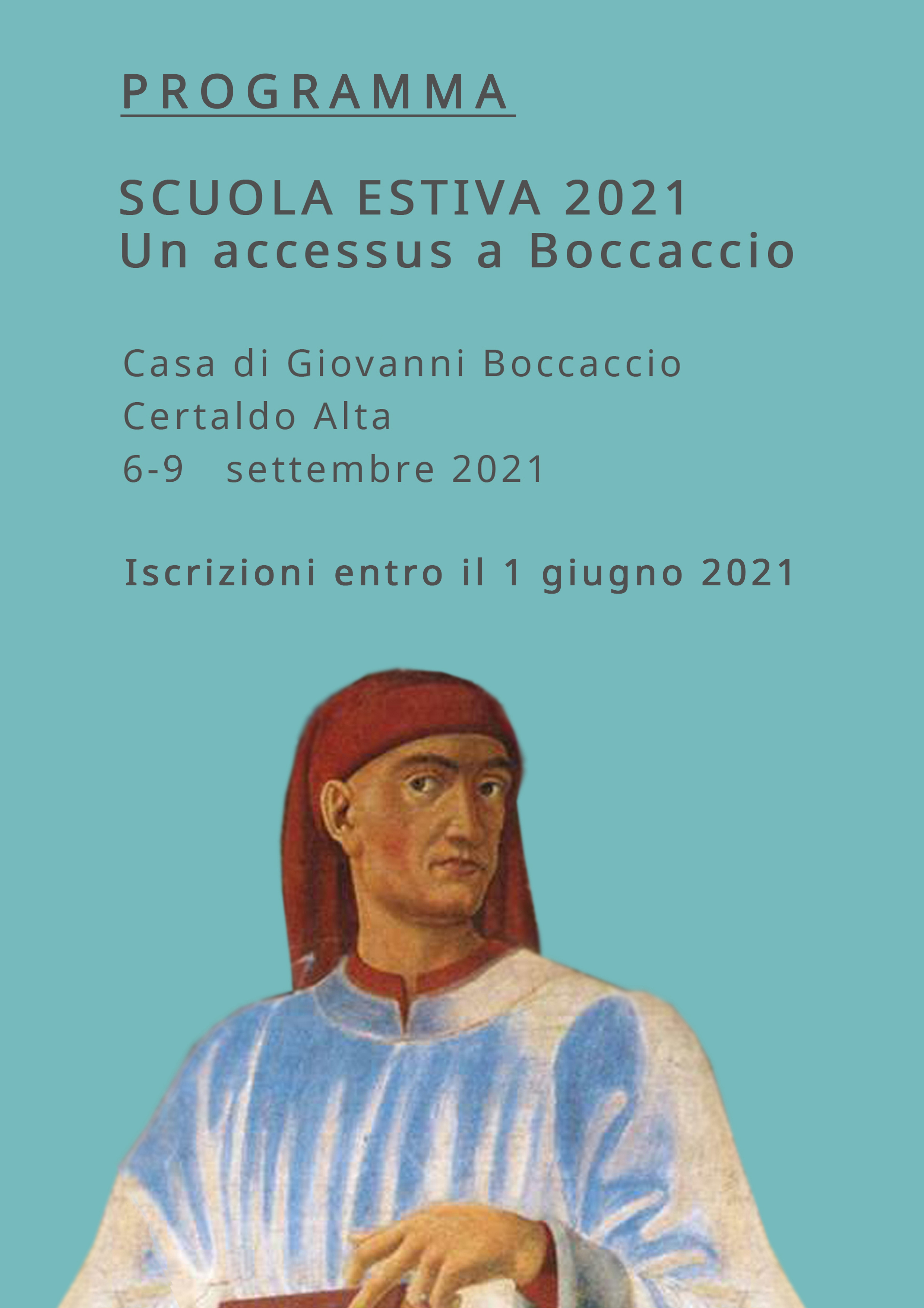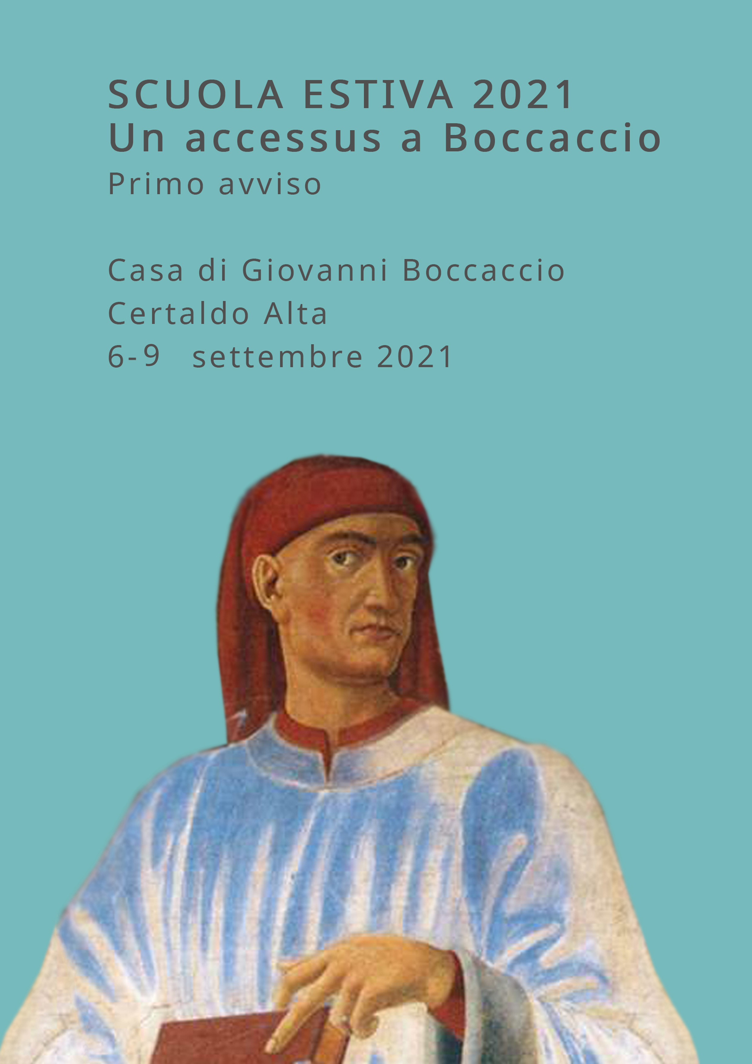 L’Ente Nazionale Giovanni Boccaccio (ENGB) organizza a Certaldo, nella casa di Giovanni Boccaccio, una Scuola estiva rivolta a studiosi in formazione e dedicata all’opera di Giovanni Boccaccio, alla sua fortuna, agli strumenti critici per la sua interpretazione. Essa prevede lo scambio e l’acquisizione di metodi e problemi legati alla ricerca, in un ambito multidisciplinare di carattere letterario, filologico, linguistico, paleografico-codicologico, storico-artistico, in grado di offrire un’occasione di riflessione critica, di formazione metodologica, di aggiornamento storiografico.
