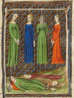Londra, British Library, Royal 20 C V, f. 106r. Armonia viene riconosciuta e assassinata dopo la morte della giovane schiava che ne aveva preso il posto.