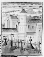 Parigi, Bibliothèque Nationale de France, Fr. 232, f. 261r. L'esercito di Tito assedia la città di Gerusalemme.