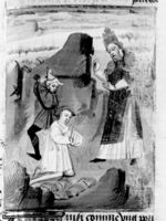 Parigi, Bibliothèque Nationale de France, Fr. 232, f. 286r. Giuliano l'Apostata viene trafitto da Mercurio.