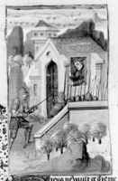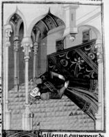 Parigi, Bibliothèque Nationale de France, Fr. 232, f. 282r. Il corpo dell'imperatore Galerio giace nel palazzo.