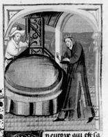 Parigi, Bibliothèque Nationale de France, Fr. 232, f. 304v. La regina Rosmunda e lo scudiero Elmichi bevono due coppe di vino avvelenato.