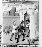 Parigi, Bibliothèque Nationale de France, Fr. 232, f. 201r. Un uomo viene condotto in prigione.