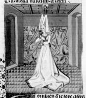 Parigi, Bibliothèque Nationale de France, Fr. 232, f. 244r. Messalina si rivolge a Caligola e Tiberio.