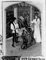 Parigi, Bibliothèque Nationale de France, Fr. 232, f. 206v. La morte di Mitridate (modello mal compreso: è rappresentato un uomo che fa a pezzi un cadavere).