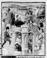 Parigi, Bibliothèque Nationale de France, Fr. 232, f. 23r. Priamo fa ricostruire Troia.