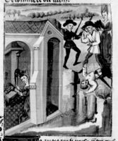 Parigi, Bibliothèque Nationale de France, Fr. 232, f. 25v. Neottolemo (Pirro) uccide Priamo.