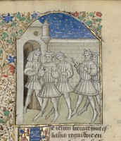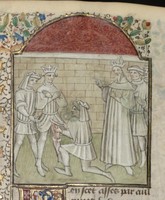 Parigi, Bibliothèque interuniversitaire Sainte-Geneviève, 1128, f. 341v. Un sovrano viene condotto in prigione.