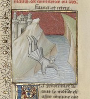 Parigi, Bibliothèque interuniversitaire Sainte-Geneviève, 1128, f. 336r. Arrigo, figlio di Federico II di Svevia, precipita in un fiume.
