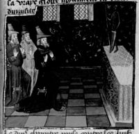 Parigi, Bibliothèque Nationale de France, Fr. 230, f. 31r. Il copista del manoscritto è P. Droulin. Giovanni Boccaccio riceve re Saul.