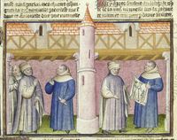 Città del Vaticano, Biblioteca Apostolica Vaticana, Pal. lat. 1989, f. 16r. Il copista del manoscritto, datato 15 giugno 1414, è Laurent de Premierfait. Giannotto convince l'ebreo Abraam a convertirsi al Cristianesimo: la fede dei due uomini è indicata rispettivamente dall'immagine di Cristo e di Mosè; sulla destra, all'interno di un battistero, Abraam riceve il sacramento del battesimo.