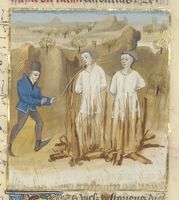 Parigi, Bibliothèque de l'Arsenal, 5192, f. 331r. I cavalieri Templari vengono arsi sul rogo.