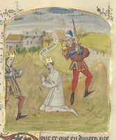 Parigi, Bibliothèque de l'Arsenal, 5192, f. 278v. L'imperatore Massenzio viene assassinato da due soldati.