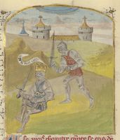 Parigi, Bibliothèque de l'Arsenal, 5192, f. 298v. Narsete strangola Sindualdo, comandante degli Eruli.