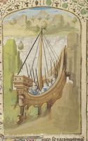 Parigi, Bibliothèque de l'Arsenal, 5192, f. 151v. Durante una tempesta la nave di Seleuco trova rifugio in una baia.