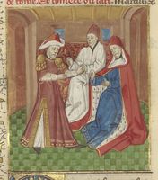 Parigi, Bibliothèque de l'Arsenal, 5192, f. 197v. Giovanni Boccaccio incontra due sovrani colpiti dalla sfortuna.