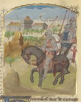 Parigi, Bibliothèque de l'Arsenal, 5192, f. 171r. Annibale si dirige verso Roma con il suo esercito.