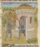 Parigi, Bibliothèque de l'Arsenal, 5192, f. 166v. Antioco III il Grande saccheggia il tempio di Giove.