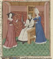 Parigi, Bibliothèque de l'Arsenal, 5192, f. 54r. Giovanni Boccaccio incontra Sardanapalo.
