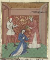 Parigi, Bibliothèque de l'Arsenal, 5192, f. 57r. Nabucodonosor incorona Sedecia.
