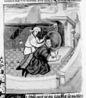 Parigi, Bibliothèque Nationale de France, Fr. 232, f. 326v. L'imperatore Isacco Angelo viene accecato per mezzo di un braciere ardente.