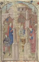 Parigi, Bibliothèque Nationale de France, Fr. 232, f. 338v. Gli abitanti di Firenze invitano Gualtieri di Brienne, duca d'Atene, ad assumere il governo della città (?).