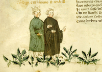 New York, Pierpont Morgan Library, M 371, f. 28v. Il copista del manoscritto, datato ottobre 1414, è Pace di Giuliano da Olibano. L'autore Giovanni Boccaccio si rivolge ad una donna 'ex cathedra'.