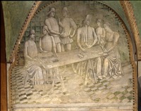 Milano, Pinacoteca del Castello Sforzesco, inv. n. 1347/21. Durante il banchetto Gualtieri rivela a Griselda la vera identità dei due giovani fanciulli.