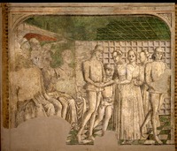 Milano, Pinacoteca del Castello Sforzesco, inv. n. 1347/19. Due messi inviati da Gualtieri si recano presso la casa di Giannucole per convocare Griselda al castello; Gualtieri ordina a Griselda di compiere i preparativi per le sue seconde nozze.