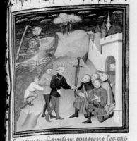 Parigi, Bibliothèque Nationale de France, Fr. 228, f. 312v. Francesco Petrarca appare a Giovanni Boccaccio