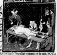 Parigi, Bibliothèque Nationale de France, Fr. 226, f. 259r. Guglielmo III, re di Sicilia, viene accecato e castrato.