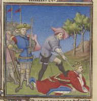 Parigi, Bibliothèque de l'Arsenal, 5193, f. 375r. Ernesto, duca di Svevia, viene assassinato nella foresta.