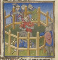 Parigi, Bibliothèque de l'Arsenal, 5193, f. 241v. Mitridate viene ucciso (?) all'interno di un recinto.