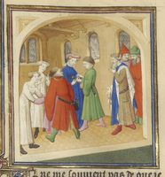 Parigi, Bibliothèque de l'Arsenal, 5193, f. 125v. Malco fa impiccare suo figlio, il vescovo Cartalone.