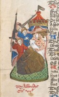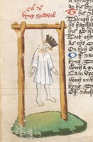 Londra, British Library, Harley 1766, f. 220v. Re Sindualdo viene impiccato.