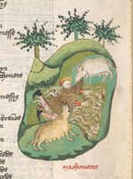 Londra, British Library, Harley 1766, f. 233r. Il naufragio della nave di Ariperto, re dei Longobardi.
