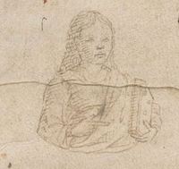 Cambridge (Mass.), Harvard University, Houghton Library, Richardson 41, f. 1v. Una donna ritratta a mezzobusto con un libro, all'interno dell'iniziale figurata S(cripsere); l'iniziale [S] non è stata realizzata.