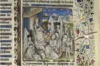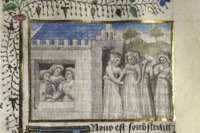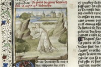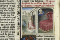 Chantilly, Bibliothèque du Château de Chantilly, 856, f. 111v. Paolina in preghiera sulla soglia del tempio; all'interno della camera da letto appare Dio Padre (?).
