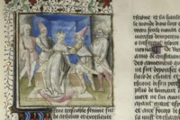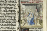 Chantilly, Bibliothèque du Château de Chantilly, 856, f. 72v. La regina di Saba fa visita a Salomone.