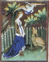Londra, British Library, Royal 20 C V, f. 32v. La sibilla Eritrea intenta a scrivere.