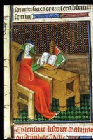 Londra, British Library, Royal 20 C V, f. 38v. La sibilla Amaltea legge in uno studio.