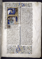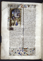 New York, Public Library, Spencer 33, f. 46r. Sempronia si difende contro Equizio dinanzi al magistrato romano.