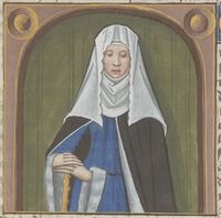 Parigi, Bibliothèque Nationale de France, Fr. 599, f. 80v. Il copista del manoscritto è Johannes Michel. Pompea Paolina, moglie di Seneca, con un libro.