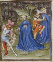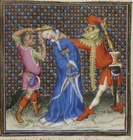 Parigi, Bibliothèque Nationale de France, Fr. 598, f. 102v. Armonia assiste all'uccisione della giovane schiava che ha preso il suo posto da parte di due sicari.
