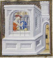 Parigi, Bibliothèque Nationale de France, Fr. 598, f. 99r. Una giovane donna romana offre il seno alla madre in carcere per sfamarla.