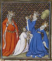 Parigi, Bibliothèque Nationale de France, Fr. 598, f. 78r. Atalia, regina di Gerusalemme, ordina il massacro di tutti i discendenti maschi della stirpe di David; Atalia viene condannata a morte.