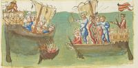 Parigi, Bibliothèque Nationale de France, It. 63, f. 145v. Il copista del manoscritto, datato 10 ottobre 1427, è Ludovico di Salvestro Ceffini. La nave di Gerbino attacca la nave su cui viaggia la figlia del re di Tunisi.