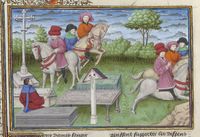 Parigi, Bibliothèque de l'Arsenal, 5070, f. 260v. Il copista del manoscritto è Guillebert de Mets. Lodovico gioca a scacchi con Beatrice, lasciandola vincere; Lodovico bastona Egano, il quale è travestito da sua moglie.